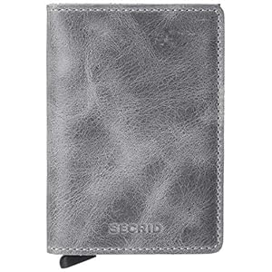 SECRID – Secrid Slim wallet Genuine Vintage Grey Leather Black RFID Safe Card Case for max 12 cards