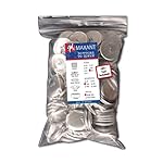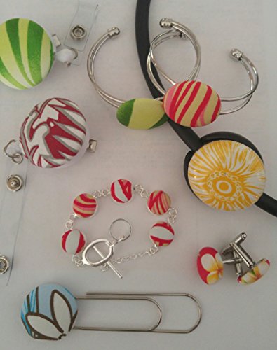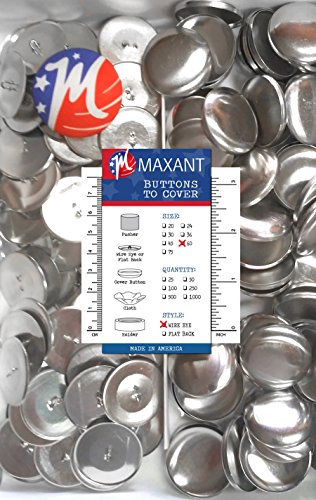 Cover buttons are great for sewing and crafting projects. Available in sizes 20(1/2), 24(5/8),30(3/4),36(7/8),45(1 1/8),60(1 1/2) and 75(1 7/8). Wire eyed backs work great for sewing projects, hair ties, bows and other items that need to be secured with thread or tided down. The flat backs are fantastic for glueing crafts, smaller sizes for earrings, shoe clips, larger sizes for Stethoscope IDs, magnets, barrettes, bookmarks… you get the idea if you need your own fabric to cover a button this is the product for you. Made in the USA with Aluminum and Stainless Steel sourced in North America(Canada).