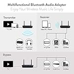 【MULTIPLE CONNECTION】The B03 Bluetooth aux adapter has both analog and digital inputs/outputs giving you the most flexibility and quality for connecting to your audio system. B03 Bluetooth adapter is compatible with all TV’s and audio systems that have an audio input. NOTE: For TV optical output – pls set audio format to PCM. Dolby / DTS are not supported.