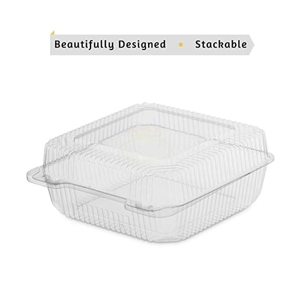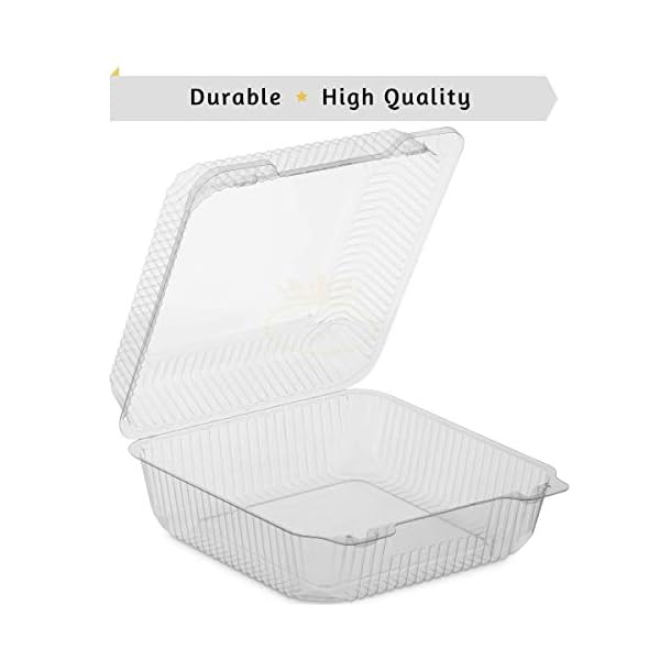 The OccaisonWise Disposable Clear Hinged Food Containers is your best choice when it comes to food transporting containers, whether you’re a Bakery owner, or restaurant manager or preparing food at your own loving home, you always want the best, and here you’ve found the best. Appropriate for any type of food, whether it’s cookies, loaf cake, hot or cold sandwiches, vegetable or fruit salads, cut up fruits and vegetables, frozen food, etc. The OccaisonWise Disposable Clear Hinged Food Containers are made of OPS, which is great for its crystal clear see-through visibility and its flexibility, yet strong and sturdy to maximize its durability, to keep your goods safe and secure. It has a double locking method, for the most secure results, and an easy OPEN tab on both sides so it can be opened easily and safely without damaging the goods. it has a flat surface to be able to write on or stick a label on it to give it a nice, neat and professional look The approx. dimensions are [inside] 7.75×7.75×3.25