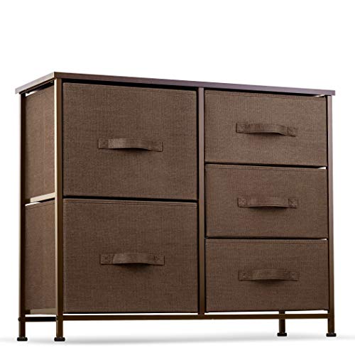 Dresser with 5 Drawers – Furniture Storage Tower Unit for Bedroom, Hallway, Closet, Office Organization – Steel Frame, Wood Top, Easy Pull Fabric Bins