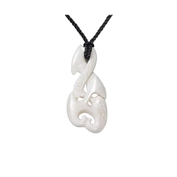 Beautiful cord necklace hand carved from cow bovine bone. Adjustable black woven soft cotton linen cord. The cow bovine bone is a by-product and no animal is harmed as a result of these being made. Cord Length 33″ (this can be adjusted). Pendant Height 2.84″. Pendant Width 1.1″. The item comes in a branded 81stgeneration gift box.