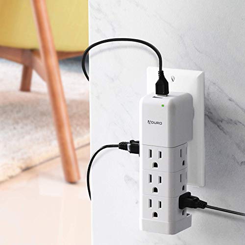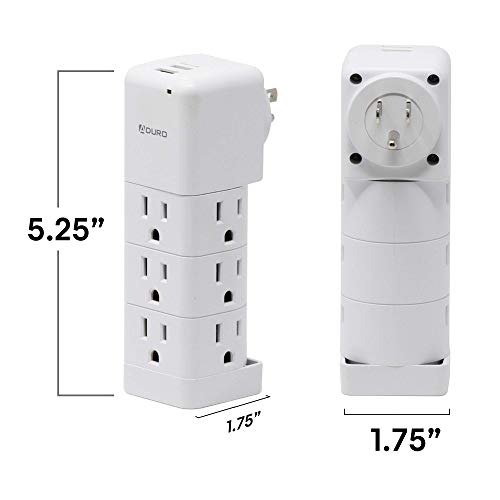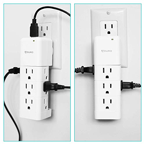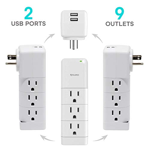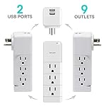 Power strip surge protector with a total of 11 Ports allows you to plug up to 9 AC devices and 2 USB devices simultaneously in this multiple outlet wall plug extender