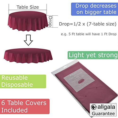 6 Burgundycolor table covers. Choose from our variety of color selection to dress up your party tables to fit your desired theme…