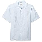 An Amazon Brand – Made with 100% linen, this short-sleeve traditional guayabera shirt features embroidered detail on left and right front panels
