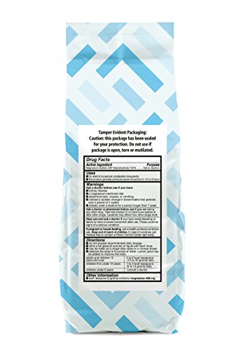 Solimo Epsom Salt comes in three resealable 8-pound bags. For a relaxing bath/soak, generously pour Epsom Salt into warm, running bath water. Can also be used as a saline laxative for relief of occasional constipation when dissolved in a glass of water; follow package directions carefully for recommended dose.