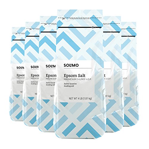 Six resealable 4-pound bags of Solimo Epsom Salt, Magnesium Sulfate U.S.P.