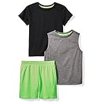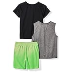 Be ready to hit the field or the court with this tee, tank and short set featuring active mesh fabric that’s ready to run and rumble
