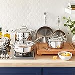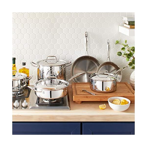 An Amazon Brand – You get the best of all worlds with this tri-ply cookware set: comfortable grip handles, stainless steel’s durability and easy cleaning, plus aluminum’s even heat distribution. It can be used on gas or electric stoves and in the oven.