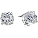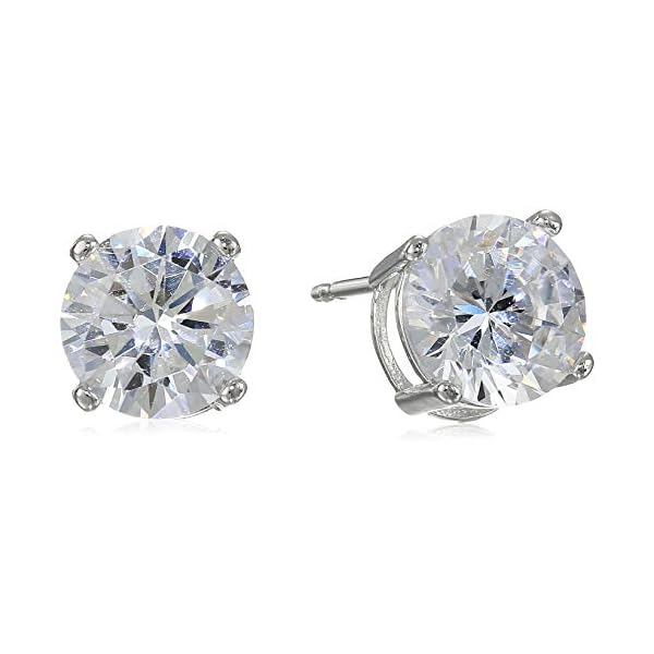 Classic stud earrings featuring cubic zirconia stones in four-prong basket settings set in sterling silver