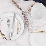 Dishwasher-safe, freezer-safe, and microwave-safe; plates can withstand heat up to 572 degrees F