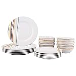 18-piece dinnerware set; service for 6; includes 6 each: 10.5-inch dinner plate, 7.5-inch salad plate, and 5.5-inch bowl