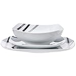 18-piece dinnerware set; service for 6; includes 6 each: 10.5-inch plate, 7.44-inch salad plate, and 6.7-inch bowl