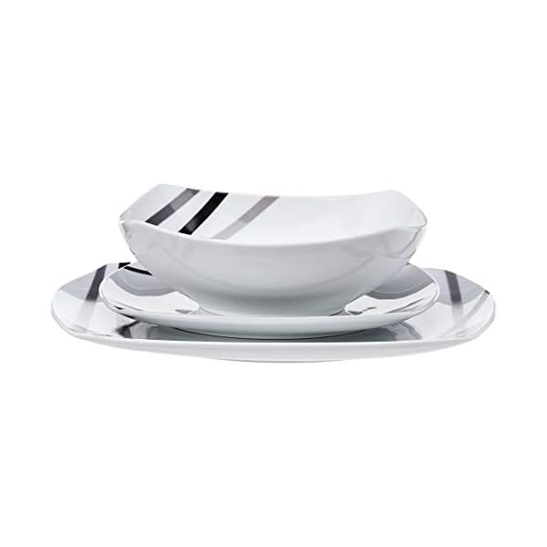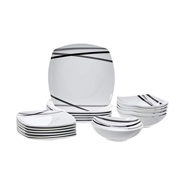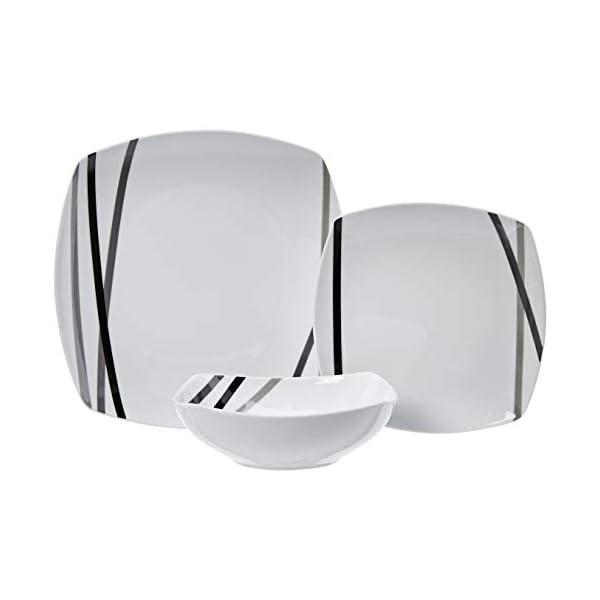 18-piece dinnerware set; service for 6; includes 6 each: 10.5-inch plate, 7.44-inch salad plate, and 6.7-inch bowl