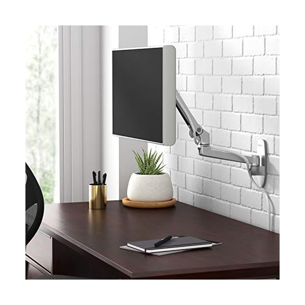 Premium single-arm wall-mounted monitor stand maximizes valuable desktop space; ideal for home or office