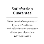 Satisfaction Guarantee: We’re proud of our products. If you aren’t satisfied, we’ll refund you for any reason within a year of purchase. 1-877-485-0385