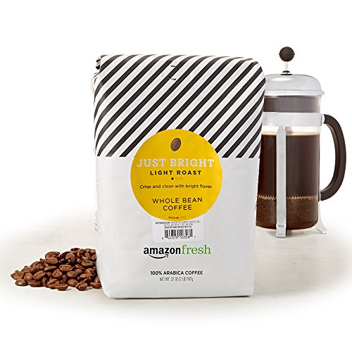 Our AmazonFresh Just Bright light roast whole bean coffee is made with high quality 100% Arabica beans, expertly roasted and immediately packed for freshness. Crisp and clean with nutty caramel notes, it’s a mild cup with a smooth finish. Pour yourself a good morning.
