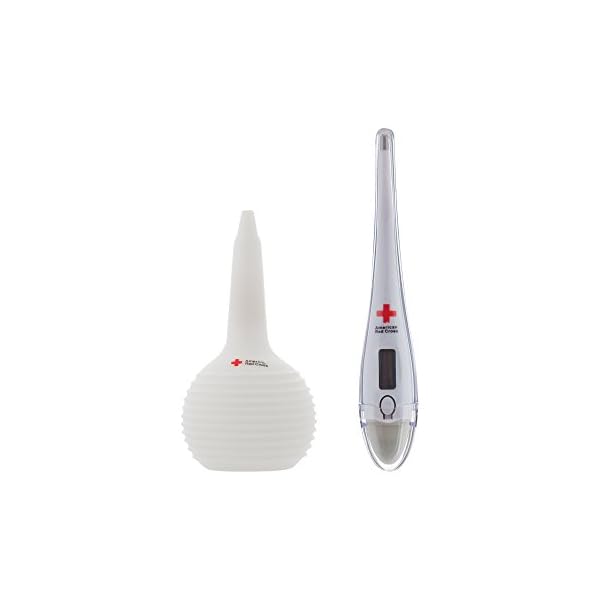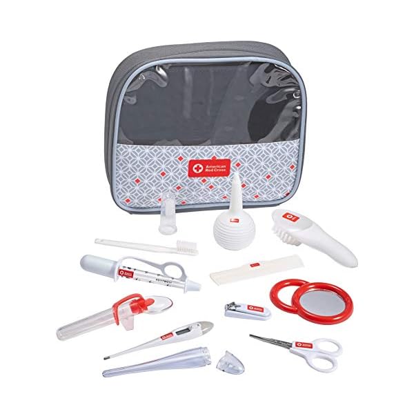 The American Red Cross Deluxe Baby Healthcare and Grooming Kit is a robust collection of nursery items that includes a nasal aspirator, digital thermometer with case, comfort tip medicine spoon with cap, brush, comb, baby nail clipper, fingertip toothbrush, toddler toothbrush, a mirror and more—all zipped into a deluxe travel/storage tote with an easy-view window that lets you see exactly what’s inside. It even includes a baby care, wellness and safety guide so you can master every task with confidence. The easy-view tote bag is the perfect place for keeping all these nursery essentials together, both at home and on the go.