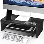 ?LARGER STORAGE SPACE – 2-tier design with 16.5” x 9.1” desktop surface, allows you to put up your monitor above and store your keyboard or office supplies underneath the monitor riser, maximum utilize your desktop space, keep your items in order