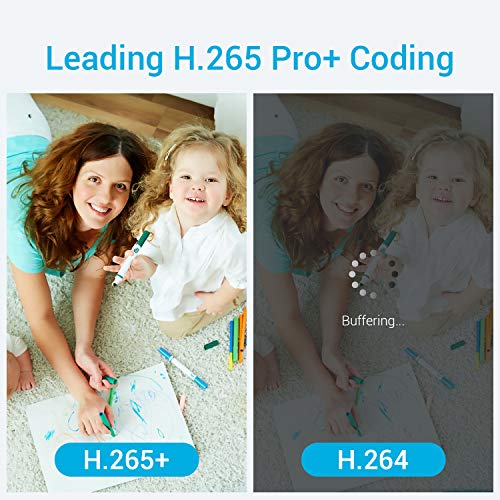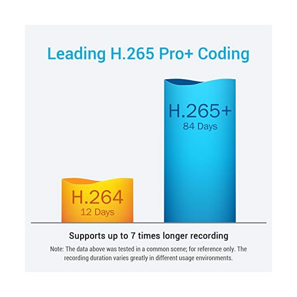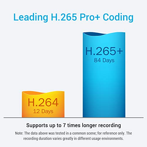 【H.265+ Video Compression】This cutting-edge technology enables you to record up to 7 times longer than H.264 with the same HDD. Thus, you can save a large amount of money on video surveillance, while enjoying much clearer and smoother video.