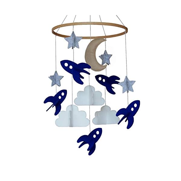 ♡ Each mobile contains 5 spaceships, 4 stars, 3 clouds and 1 moon, all made from 100% felt.