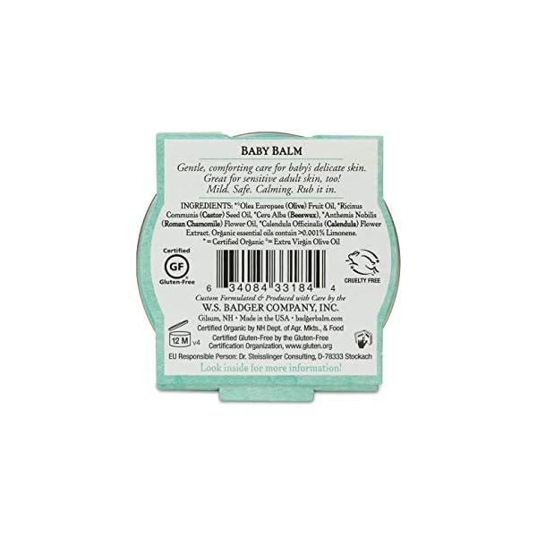 PROTECT & SOOTHE – Badger Baby Balm is gentle and great for sensitive skin. Care for your baby’s delicate skin with moisturizing oils and calming herbs to nurture and protect their sensitive skin. Organic Extra Virgin Olive Oil gently softens and moisturizes and Organic Beeswax gently protects even the most delicate skin. Certified Gluten Free and never tested on animals.