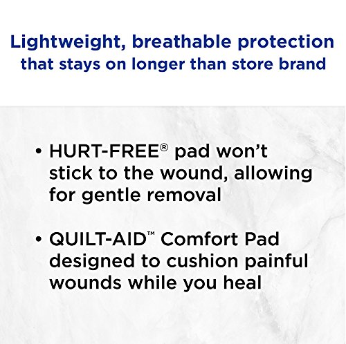 Unique Hurt-Free Pad on these Band-Aid Brand bandages won’t stick to the wound, allowing for gentle removal