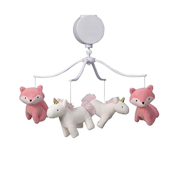 Your baby will love watching these cute little unicorns and foxes circle overhead while playing Brahms Lullaby, Twinkle Twinkle Little Star, and Rock-A-Bye Baby. The mobile plays for 20 minutes, has volume control and an on/off switch. Battery operated. Requires 3 AAA batteries not included. Imported.