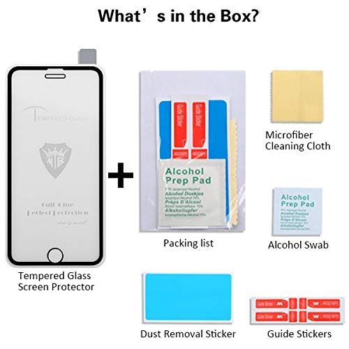 Package includes tempered glass screen protector, micro-fiber cleaning cloth, alcohol wipe pad and squeegee