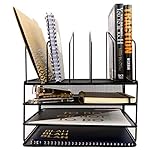 PREMIUM QUALITY: Made of metal mesh and finished with black paint, this File Organizer looks great on any desk! This all in one inbox organizer caddy will look great on a desk while also offering functionality and a modern look.