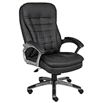 High back. Beautifully upholstered in Black CaressoftPlus. Pillow top cushions for added comfort. Padded arm rests. Adjustable tile tension control. Pneumatic gas lift seat height adjustment. Large 27″ nylon base with black caps. Hooded double wheel casters.