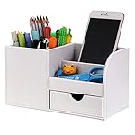 Get Organized: 3 divided compartments with a small drawer to organize all your office supplies, pen/pencil, scissors, remote control , cell phone and cards or other small supplies