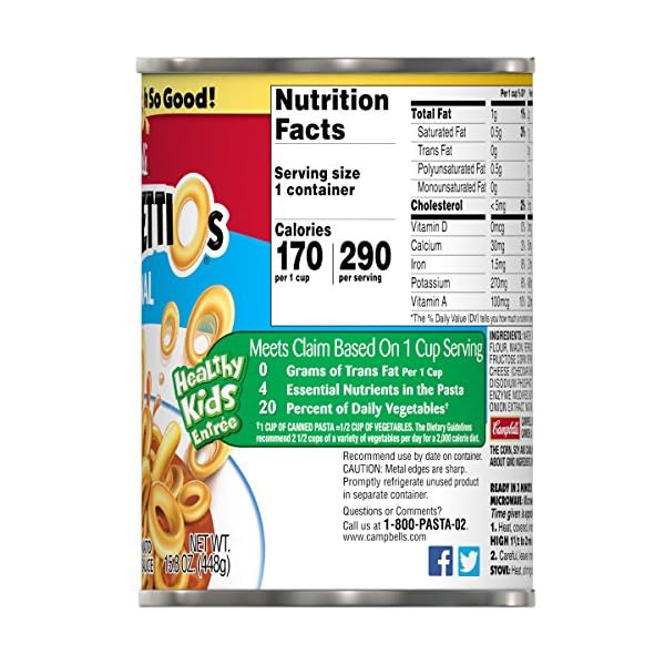 For over 50 years, families have turned to SpaghettiOs pasta for a quick and delicious dish. Campbell’s SpaghettiOs with Meatballs are made with O-shaped pasta in a cheesy tomato sauce with meatballs, packed with 11 grams of protein and 20 % of daily vegetables per 1 cup. Those spoonable little Os are easy and fun for kids to eat… but we don’t blame you for stealing a bite. Be a kid with your kid!