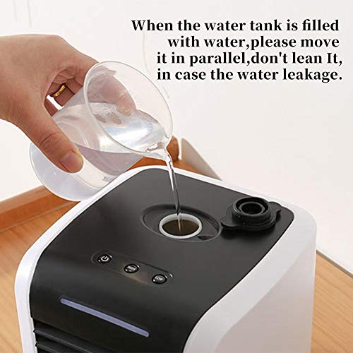 The air cooler fan is compact and small, and it does not take too much space, and it can be powered by a USB cable, and it is easy to carry to the necessary places such as office, dorm room,or pets room,blow out moist and cool steam.