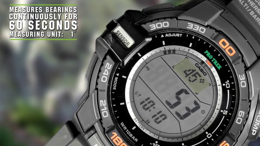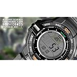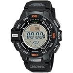 Introducing the Solar Powered PRG270 which incorporates Casio’s new Triple Sensor Version 3 engine. Advanced CASIO original technology has allowed for a 95% smaller direction sensor and 90% reduction in sensor power consumption compared to previous models. Despite their smaller size, the new sensors in this model deliver better accuracy and energy efficiency. This model can measure Altitude in 1m increments (previously 5m) and display compass readings with 60-seconds of continuous measurement (previously 20 seconds). In addition to the altimeter and digital compass, the watch’s Barometer, incorporates a unique Barometric Pressure Tendency Alarm that alerts the wearer to sudden changes in pressure readings.Design features include a case designed for outdoor gear performance. Large side buttons and one-press access to digital compass, barometric pressure and altitude, and temperature readings keep important information at your fingertips. Other features include Tough Solar, 100-meter water resistance, and more. Everything about these models is designed and engineered to make them essential pieces of outdoor gear. Black resin band digital with neutral face.