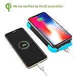 4 item accessory kit combo bundle pack includes: Cellet waterproof, solar powered, rugged fast charging Qi wireless powerbank portable charger with dual LED flashlights – (Blue), Compass carabiner hook, Type-C (USB-C to USB-A) cable and Bemz Depot Atom cleaning lens wipe