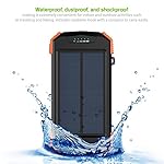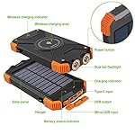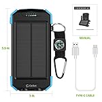 Built with a 10000mAh long lasting battery life. Type-C USB charging cable is included inside the box (AC adapter sold separately). Charging time: approximately 4 to 5 hours. Green light indicator shows solar power availability, indicates the solar panels are fully exposed to the sunlight and is charging without connecting to power