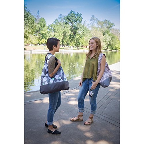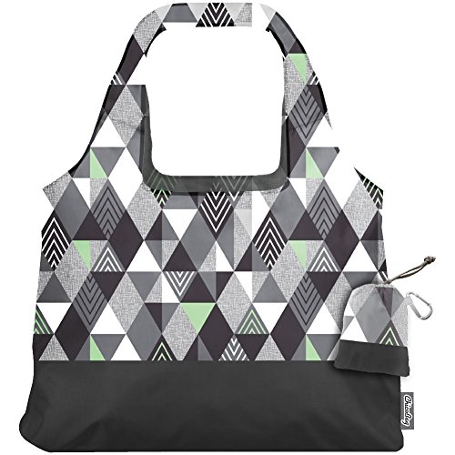COMPACT DESIGN: Easy to stuff full size shopping bag into attached small carrying pouch measuring 3” x 5” Opens to a large capacity, over the shoulder style reusable grocery bag measuring 19” x 13” Tested to comfortably hold up to 40 pounds!