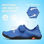 DRY QUICKLY:Our Kids water shoes its upper with stretch breathable ultra light weight fabric for fast draining and cross ventilation help shoes get dry quickly,and creates a cooler and healthier shoe environment.