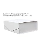 Enjoy a gift box that allows you to gift items with little to no effort!Our gift boxes are designed to be gifted as is requiring no wrapping paper and best of all they are strong and durable enough to be re-used. With a magnetic lid flap, they can be opened and closed freely or they can be enhanced with decorative string or ribbon for a secure shut when more then a magnetic hold is required. Large enough to hold many different gifts!Outer dimensions of 12 x 9 x 4 inches and Inner Dimensions of 11.25 x 8.5 x 3.75 inches Great for many different items such as Bath and Beauty Products, Small Clothing Items, Small Toys and Teddy Bears, Wrapped Candy, Small Electronics, Candles, jewellery, Magazines, Small Office Supplies and many other mid to small sized products.Great for all occasions or around the house and office storage!Often used for Weddings, Birthdays, Showers, Christmas, Easter, Fathers day, Mothers Day, Anniversaries, Graduations, Engagements, Promotions, Valentines, New Years, or any other gifting occasion you can think of. Includes3 Matte White Gift Boxes These boxes are shipped flat and can be constructed in just seconds to be used right away or they can be easily stored and used as needed! 3 pack flat dimensions are 16.5 x 12 x 1 inchCohaja Gift Boxes are Available in Black and White, White, Black, Orange and Blue!