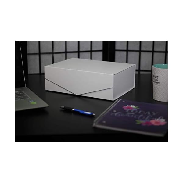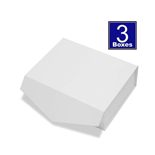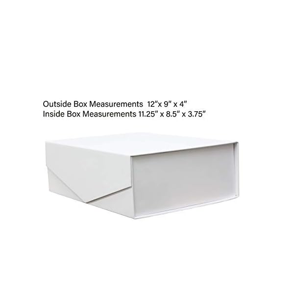 Enjoy a gift box that allows you to gift items with little to no effort!Our gift boxes are designed to be gifted as is requiring no wrapping paper and best of all they are strong and durable enough to be re-used. With a magnetic lid flap, they can be opened and closed freely or they can be enhanced with decorative string or ribbon for a secure shut when more then a magnetic hold is required. Large enough to hold many different gifts!Outer dimensions of 12 x 9 x 4 inches and Inner Dimensions of 11.25 x 8.5 x 3.75 inches Great for many different items such as Bath and Beauty Products, Small Clothing Items, Small Toys and Teddy Bears, Wrapped Candy, Small Electronics, Candles, jewellery, Magazines, Small Office Supplies and many other mid to small sized products.Great for all occasions or around the house and office storage!Often used for Weddings, Birthdays, Showers, Christmas, Easter, Fathers day, Mothers Day, Anniversaries, Graduations, Engagements, Promotions, Valentines, New Years, or any other gifting occasion you can think of. Includes3 Matte White Gift Boxes These boxes are shipped flat and can be constructed in just seconds to be used right away or they can be easily stored and used as needed! 3 pack flat dimensions are 16.5 x 12 x 1 inchCohaja Gift Boxes are Available in Black and White, White, Black, Orange and Blue!