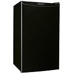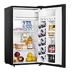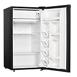 ‘ Compact Refrigerator with Freezer Section, Compact, Color Black, Refrigerator Capacity 2.9 cu. ft., Freezer Capacity 0.3 cu. ft., Total Capacity 3.2 cu. ft., Refrigerator Temperature Range (F) 32 to 50, Number of Doors 1, Number of Shelves (1) Full Shelf and (1) Half Shelf, Push Button Defrost, Control Type Mechanical, 5 ft. Cord Length, Voltage 115V, 15 Amps, Door Hinge Side, Door Type Swing ‘