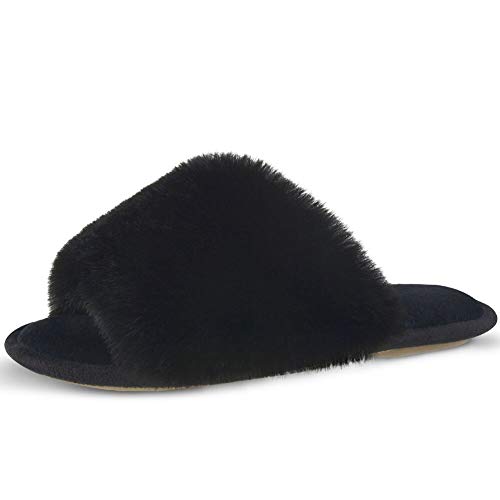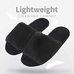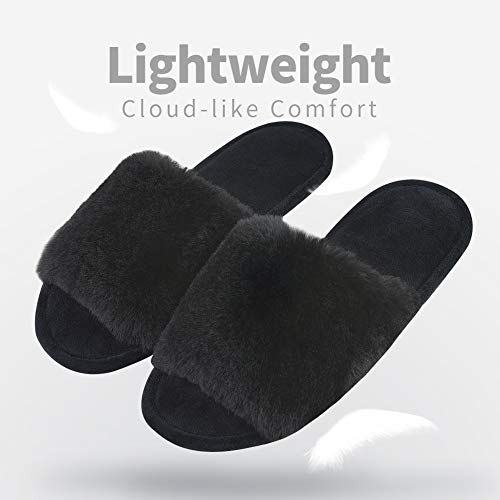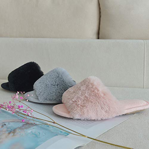 SOFT FUZZY SLIPPER: Soft elegant fleece upper and terry cloth lining are skin friendly, Breathable open toe design keep your feet cool and fresh in spring or summer. Available in 3 colors, gray, pink and black, perfect for women of all ages and lifestyles.