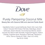 Dove Purely Pampering Coconut Milk Beauty Bar is a gentle cleanser for your face, body, and hands that has the warm, comforting scent of coconut and jasmine