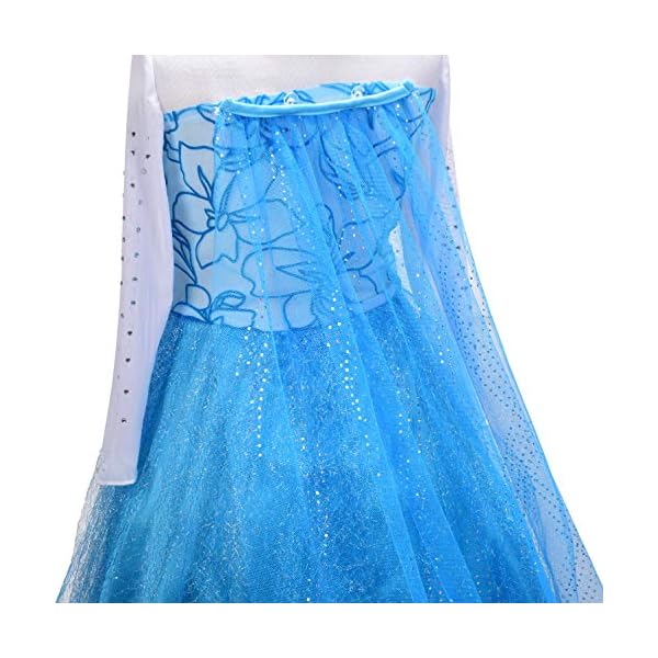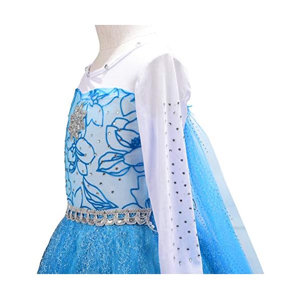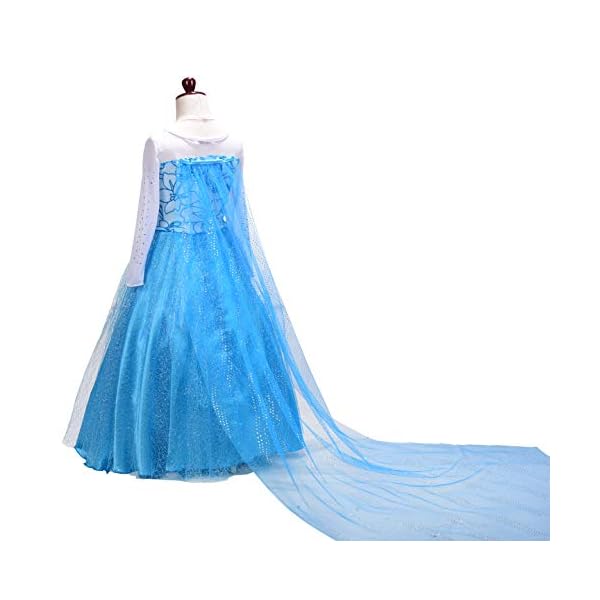 A long train or cape draping from back or chest (depends on which model you have chosen)which makes your girl looks exactly as Princess Elsa.