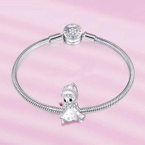♥ Material♥ Childhood Sweethearts Girl Charm Pink Enamel 100% 925 Sterling Silver Charms