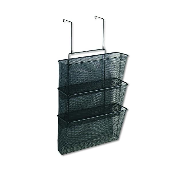 Fellowes® Mesh Partition Additions™ Triple File Pocket keeps letter size files within easy reach – first pocket offers 4” capacity while the other two offer 1-½” capacity. Mounts to partition walls 1-½”-3” wide without tools to save space. Includes wall mounting hardware. Contemporary mesh and wire design.