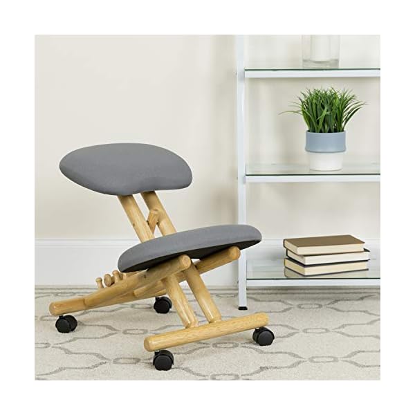 The ergonomic kneeling chair is a trend setting option for people who want to support their body’s natural posture.It’s designed to strengthen your lower back muscles and help with spinal alignment. The firm supportive padded seat and knee rests are filled with 2 inches of CA117 fire retardant foam and covered with breathable fabric. The height adjustable frame has a natural wood finish. Dual wheel casters make it easy to roll across the floor.This innovative chair helps to improve your posture, relieve back pain and give you more productive hours in the day.