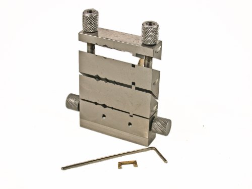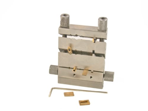 This Jeweler’s Miter Jig Saw Vise cut and file exact 45° degree, 60° degree, 90° degree, 120° degree and 135° degree angles on Wire, Tubing, and Flat Sheet Stock. This tool is specially designed for the production of Rhombus, Rhomboids, Squares, Rectangles, Trapezoids, Hexagons, Octagons, etc. Get Amazing results with perfect joints and equilateral geometrical shapes. Great for the Construction of metal boxes, catches and joints, brooches, hinges, frames, clasps, fittings, findings, etc. This Miter Jig Saw can be clamped in a vise or hand-held can be used as a Shape Bender Block with a rawhide mallet or rubber hammer to bend Sheet Metal along the different angles bender edges of the jig. This tool holds stock up to 1/2″ thick. so you can file or saw perfectly Flat 45°, 60°, 90°, 120° & 135° Degree cuts You can Saw or File along the face of the jig, which is constructed of high carbon tool steel. Nine grooves are provided to hold a broad range of wire and tubing. Also useful for Bending or Scoring Sheet Metal and Wire. Furnished with a Cutter Guide Rod to regulate the lengths of cuts. Measures 75mm x 70mm x 12.5nm with exclusive locking nuts mechanism. Hardened And Polished, For Sawing Off, Level-Venal And Drawing Off From Hinges. Great feature when cutting multiple pieces of material to the same length, will save you time and ensure accurate results. * Featuring 45º / 60 º / 90 º / 120 º & 135º angles: cutting of profiles, production of Rhombus, Rhomboids, Squares, Rectangles, Trapezoids, Hexagons, Octagons, etc. Super hard tool steel hardness: 60-65 HRC weight: 290 gr. Our jewelers jig vise miter block is guaranteed life time for materials and workmanship Note*: Do not use high quality files with this jig as they may become damaged with prolonged use. CAUTION: Machined edges are very sharp. Made in (varies from countries) : Germany, Austria.