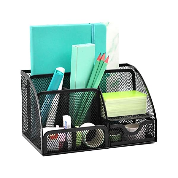 ENOUGH SPACE – 6 compartment mesh desktop organizer with well-thought out dimensions for your desk accessories that will keep the stuff you need at hand, while not hinder your use.